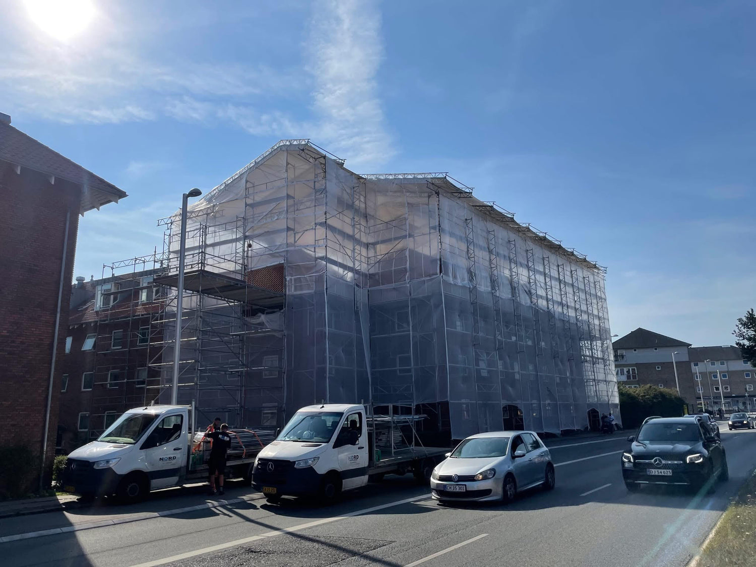 Er der tale om totalrenoveringer, udskiftning af tag, vinduer, fuger mm.? Så er NORD Stillads Service din erfarne stillads entreprenør.